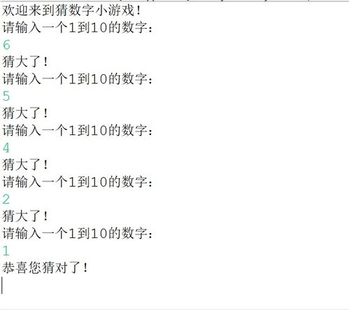 首先,让我们来了解一下这个游戏的规则。游戏者需要根据提示,猜测一个介于1到100之间的数字。每次猜测后,系统会告诉你这个数字是偏大还是偏小,这样你就可以根据提示不断缩小范围,最终找到正确的答案。