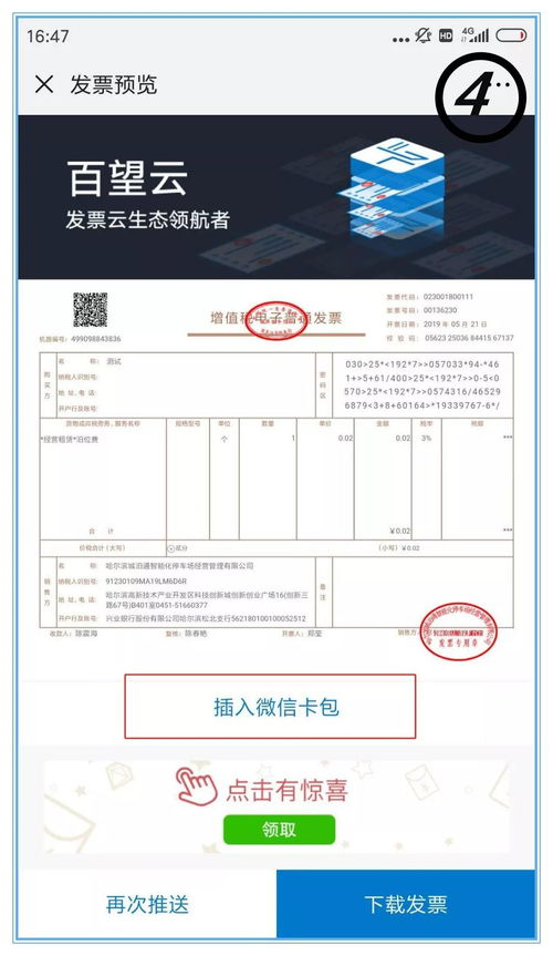 5. 开具发票:填写完开票信息后,点击“开具发票”按钮。系统会自动生成一张电子发票,你可以选择保存到手机相册或直接发送给对方。