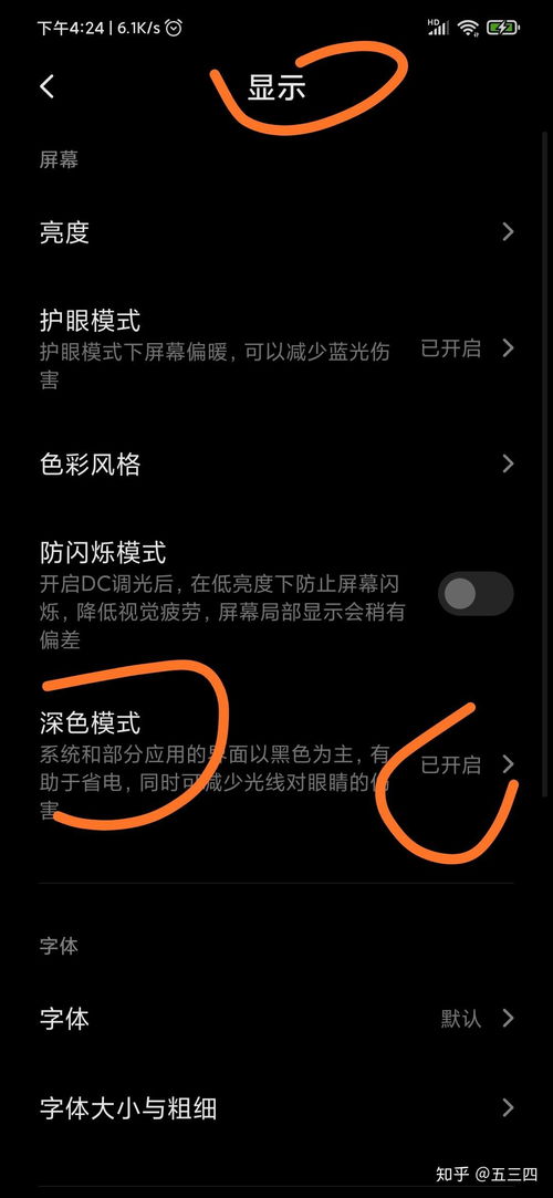 2. 调整字体大小:在深色模式下,字体可能会显得有些小,你可以进入“显示”设置,调整字体大小。