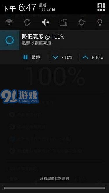 (1)下拉通知栏:长按屏幕顶部,下拉通知栏,找到亮度调节按钮,上下滑动即可调整亮度。
