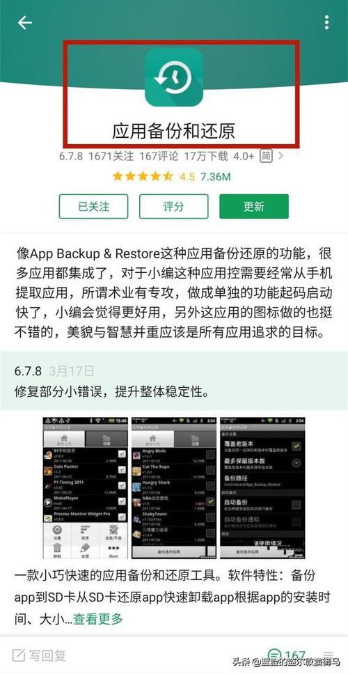 你有没有想过,你的安卓手机里那些珍贵的照片、联系人、应用数据,如果突然丢失了,那得多心疼啊!别担心,今天就来给你揭秘安卓系统备份app目录的秘密,让你轻松备份,再也不怕数据丢失啦!