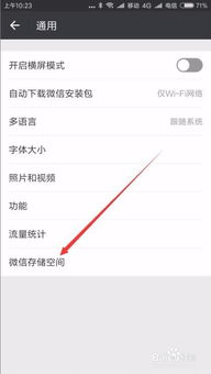 - 微信设置:进入微信设置,找到“通用”选项,点击“存储空间”,然后选择“清理微信缓存”。