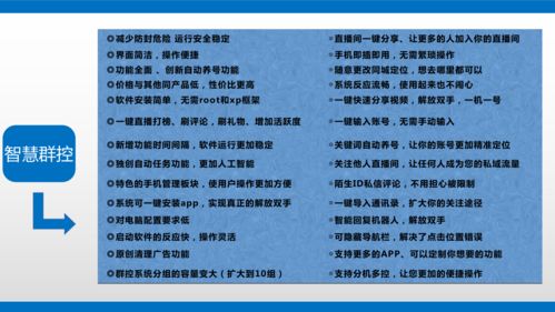安卓群控系统,这个看似神秘的助手,其实就在我们身边。它利用远程控制、虚拟化、云端存储等技术,实现了对多台安卓手机的批量管理。在这个科技飞速发展的时代,安卓群控系统无疑为我们的生活带来了诸多便利。让我们一起期待,未来它将带给我们更多的惊喜吧!