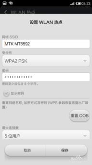 5. 设置热点名称和密码:在这里,你可以设置WiFi热点的名称和密码。设置完成后,点击“保存”或“确定”。
